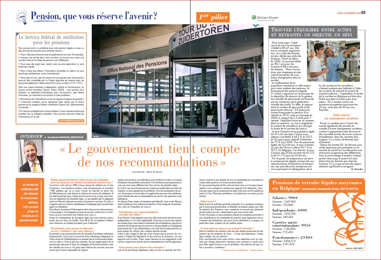 Vous participez à la rédaction du Rapport annuel du Service de médiation Pensions (dans lequel sont publiés les plaintes les plus marquantes, les suggestions d’amélioration adressées aux services de pensions et les recommandations à l’intention du législateur).